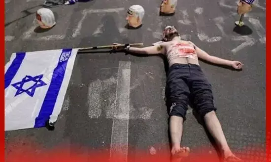 ਇਜ਼ਰਾਈਲ ਵਿੱਚ ਪ੍ਰਧਾਨ ਮੰਤਰੀ ਬੈਂਜਾਮਿਨ ਨੇਤਨਯਾਹੂ ਵਿਰੁੱਧ ਗੁੱਸਾ ਤੇਜ਼ ਹੋ ਰਿਹਾ ਹੈ। ਤੇਲ ਅਵੀਵ ਵਿੱਚ ਹਾਲ ਹੀ ਵਿੱਚ ਹੋਏ ਇੱਕ ਹਿੰਸਕ ਵਿਰੋਧ ਪ੍ਰਦਰਸ਼ਨ ਦੌਰਾਨ ਲੋਕਾਂ ਨੇ ਨੇਤਨਯਾਹੂ ਦੇ ਚਿਹਰੇ ਦੇ ਮਾਸਕ ਪਹਿਨ ਕੇ ਗਲੀਆਂ ਵਿੱਚ ਖੂਨ ਨਾਲ ਲੱਥਪੱਥ 'ਕੱਟੇ ਹੋਏ ਸਿਰ' ਰੱਖੇ। ਇਸ ਪ੍ਰਦਰਸ਼ਨ ਵਿੱਚ ਇੱਕ ਆਦਮੀ ਨੂੰ ਨਕਲੀ ਖੂਨ ਦੀਆਂ ਪੱਟੀਆਂ ਨਾਲ ਬੰਨ੍ਹਿਆ ਹੋਇਆ ਅਤੇ ਨੇਤਨਯਾਹੂ ਦੇ ਮਾਸਕਾਂ ਨਾਲ ਘਿਰਿਆ ਹੋਇਆ ਦੇਖਿਆ ਗਿਆ, ਜਿਨ੍ਹਾਂ 'ਤੇ "ਅਪਰਾਧੀ" ਅਤੇ "ਖ਼ਤਰਾ" ਵਰਗੇ ਸ਼ਬਦ ਲਿਖੇ ਸਨ। ਇਹ ਦ੍ਰਿਸ਼ ਰਾਜਨੀਤਿਕ ਮਾਹੌਲ ਨੂੰ ਹੋਰ ਤਣਾਅਪੂਰਨ ਬਣਾ ਰਿਹਾ ਹੈ।