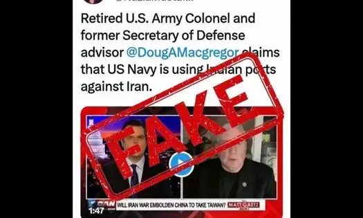 ਭਾਰਤੀ ਵਿਦੇਸ਼ ਮੰਤਰਾਲੇ ਦੇ ਅਧਿਕਾਰਤ ਤੱਥ-ਜਾਂਚ (Fact-Check) ਖਾਤੇ ਨੇ 'X' (ਪਹਿਲਾਂ ਟਵਿੱਟਰ) 'ਤੇ ਇੱਕ ਸਖ਼ਤ ਪੋਸਟ ਸਾਂਝੀ ਕਰਦਿਆਂ ਇਸ ਨੂੰ "ਨਿਰਆਧਾਰ" ਅਤੇ "ਮਨਘੜਤ" ਕਰਾਰ ਦਿੱਤਾ ਹੈ। ਮੰਤਰਾਲੇ ਨੇ ਸਪੱਸ਼ਟ ਕੀਤਾ ਕਿ ਅਮਰੀਕੀ ਜਲ ਸੈਨਾ ਭਾਰਤ ਦੇ ਕਿਸੇ ਵੀ ਠਿਕਾਣੇ ਦੀ ਵਰਤੋਂ ਈਰਾਨ ਵਿਰੁੱਧ ਨਹੀਂ ਕਰ ਰਹੀ। ਪੋਸਟ ਵਿੱਚ ਚੇਤਾਵਨੀ ਦਿੱਤੀ ਗਈ ਹੈ ਕਿ ਅਜਿਹੀਆਂ ਝੂਠੀਆਂ ਖ਼ਬਰਾਂ ਤੋਂ ਸਾਵਧਾਨ ਰਹਿਣ ਦੀ ਲੋੜ ਹੈ ਜੋ ਜਾਣਬੁੱਝ ਕੇ ਗਲਤਫਹਿਮੀਆਂ ਪੈਦਾ ਕਰਨ ਲਈ ਫੈਲਾਈਆਂ ਜਾ ਰਹੀਆਂ ਹਨ।