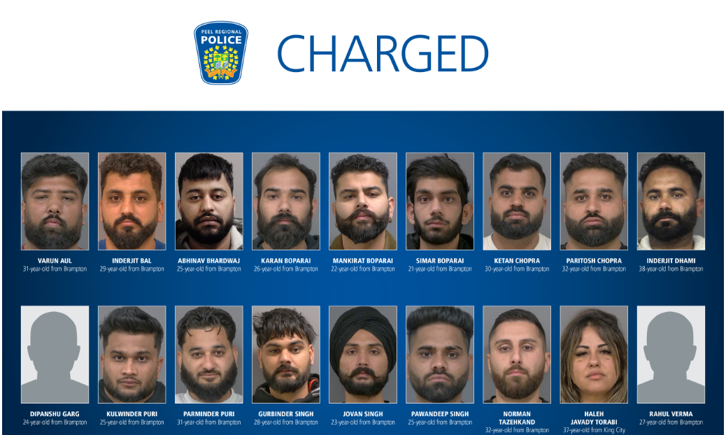 ਕੈਨੇਡਾ: ਬਰੈਂਪਟਨ 'ਚ ਜਬਰੀ ਵਸੂਲੀ ਦੇ ਦੋਸ਼ਾਂ ਅਧੀਨ 10 ਪੰਜਾਬੀਆਂ ਸਮੇਤ 18 ਗ੍ਰਿਫਤਾਰ