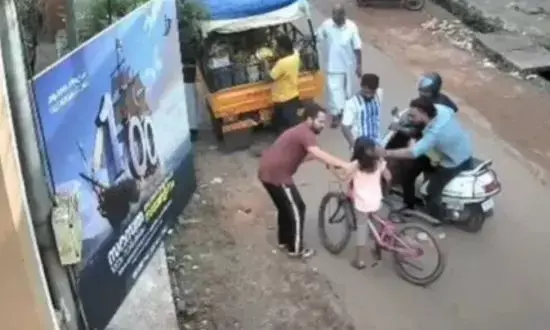 ਕੰਨੂਰ, ਕੇਰਲ: ਕੇਰਲ ਦੇ ਕੰਨੂਰ ਜ਼ਿਲ੍ਹੇ ਦੇ ਪਜ਼ਯੰਗੜੀ ਇਲਾਕੇ ਵਿੱਚ ਇੱਕ ਦਿਲ ਜਿੱਤ ਲੈਣ ਵਾਲੀ ਘਟਨਾ ਸਾਹਮਣੇ ਆਈ ਹੈ। ਇੱਕ ਅੱਠ ਸਾਲ ਦੀ ਕੁੜੀ ਸਾਈਕਲ ਚਲਾਉਂਦੇ ਸਮੇਂ ਹਾਦਸੇ ਦਾ ਸ਼ਿਕਾਰ ਹੋ ਸਕਦੀ ਸੀ, ਜਦੋਂ ਉਸਦੇ ਗਲੇ ਵਿੱਚ ਅਚਾਨਕ ਚਿਊਇੰਗਮ ਫਸ ਗਈ ਅਤੇ ਉਸਨੂੰ ਸਾਹ ਲੈਣ ਵਿੱਚ ਮੁਸ਼ਕਲ ਹੋਣ ਲੱਗੀ।