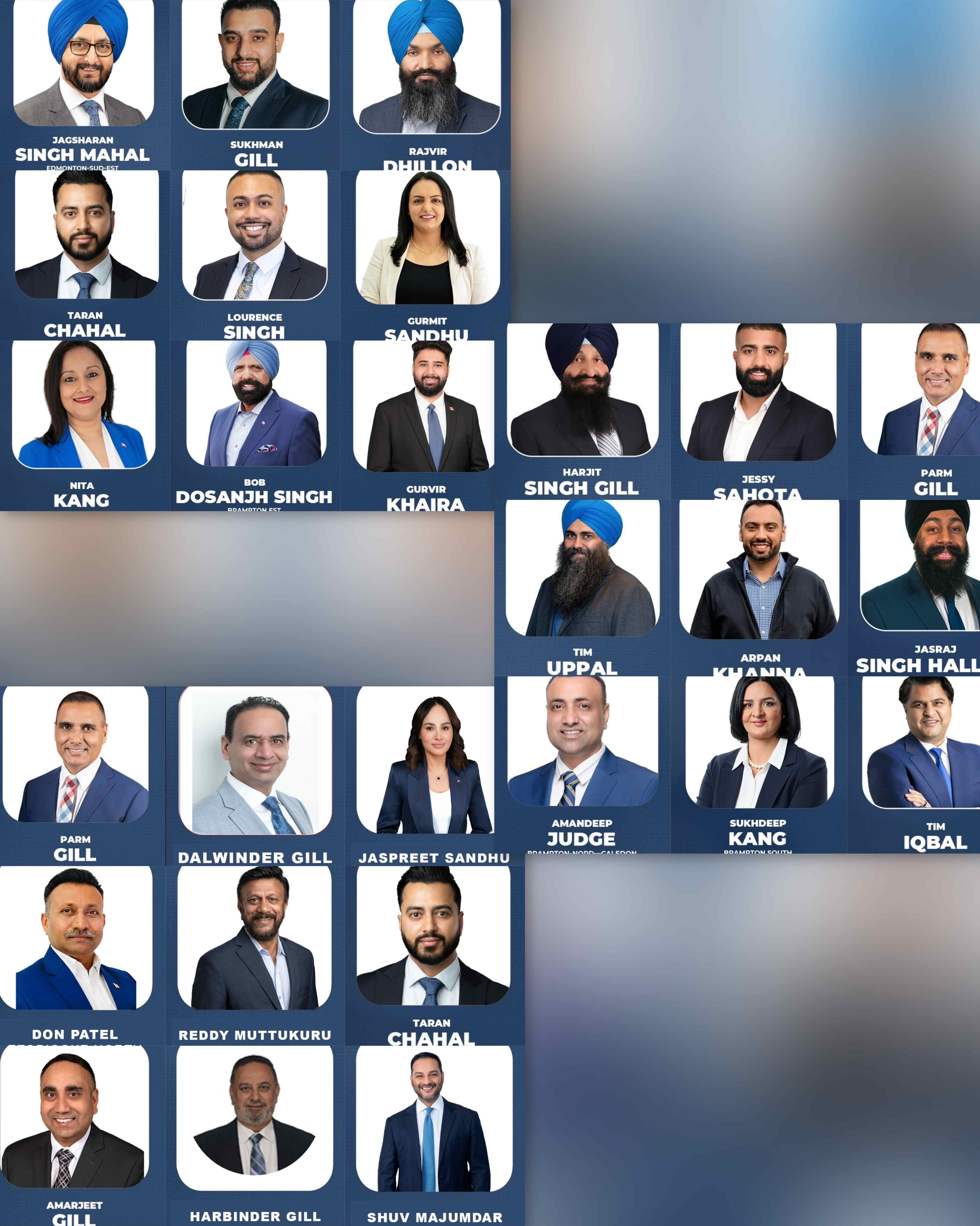 ਵਿਰੋਧੀ ਧਿਰ ਕੰਜ਼ਰਵੇਟਿਵ ਪਾਰਟੀ 'ਚ 25 ਉਮੀਦਵਾਰ ਦੱਖਣੀ ਭਾਈਚਾਰੇ ਨਾਲ ਸਬੰਧਿਤ ਹਨ ਜਿੰਨ੍ਹਾਂ 'ਚ 21 ਪੰਜਾਬੀ ਅਤੇ 4 ਭਾਰਤੀ ਉਮੀਦਵਾਰ ਹਨ। ਸਰੀ ਸੈਂਟਰ ਤੋਂ ਰਾਜਵੀਰ ਢਿੱਲੋਂ, ਬਰੈਂਪਟਨ ਈਸਟ ਤੋਂ ਬੋਬ ਦੋਸਾਂਝ, ਕੈਲਗਰੀ ਮੈਕਨਾਈਟ ਤੋਂ ਦਲਵਿੰਦਰ ਗਿੱਲ, ਵਿੰਡਸਰ ਵੈਸਟ ਤੋਂ ਹਰਬਿੰਦਰ ਗਿੱਲ, ਮਿਲਟਨ ਈਸਟ-ਹਾਲਟਨ ਹਿੱਲਜ਼ ਸਾਊਥ ਤੋਂ ਪਰਮ ਗਿੱਲ, ਬਰੈਂਪਟਨ- ਚਿਨਗੂਜ਼ੀ ਪਾਰਕ ਤੋਂ ਟਿਮ ਇਕਬਾਲ ਬਰੈਂਪਟਨ ਨੌਰਥ ਤੋਂ ਅਮਨਦੀਪ ਜੱਜ, ਮਿਸੀਸਾਗਾ ਈਸਟ-ਕੁਕਜ਼ਵੀਲੇ ਤੋਂ ਨੀਟਾ ਕੰਗ, ਬਰੈਂਪਟਨ ਸਾਊਥ ਤੋਂ ਸੁਖਦੀਪ ਕੰਗ, ਗਲਫ ਤੋਂ ਗੁਰਵੀਰ ਖਹਿਰਾ, ਓਕਸਫੋਰਡ ਤੋਂ ਅਰਪਨ ਖੰਨਾ, ਡੈਲਟਾ ਤੋਂ ਜੈਸੀ ਸਹੋਤਾ, ਸਕਾਰਬਰੋ ਨੌਰਥ ਤੋਂ ਗੁਰਮੀਤ ਸੰਧੂ, ਮਿਸੀਸਾਗਾ ਮਾਲਟਨ ਤੋਂ ਜਸਪ੍ਰੀਤ ਸੰਧੂ, ਸਰੀ ਨਿਊਟਨ ਤੋਂ ਹਰਜੀਤ ਸਿੰਘ ਗਿੱਲ, ਐਬਟਸਫੋਰਡ- ਸਾਊਥ ਲੈਂਗਲੀ ਤੋਂ ਸੁਖਮਨ ਸਿੰਘ ਗਿੱਲ, ਕੈਲਗਰੀ ਈਸਟ ਤੋਂ ਜਸਰਾਜ ਸਿੰਘ ਹੱਲਣ, ਐਡਮੰਟਨ ਸਾਊਥ ਈਸਟ ਤੋਂ ਜਗਸ਼ਰਨ ਸਿੰਘ ਮਾਹਲ, ਐਡਮੰਟਨ ਗੇਟਵੇਅ ਤੋਂ ਟਿਮ ਉੱਪਲ, ਬਰੈਂਪਟਨ ਸੈਂਟਰ ਤੋਂ ਤਰਨ ਚਾਹਲ, ਬਰੈਂਪਟਨ ਵੈਸਟ ਤੋਂ ਅਮਰਜੀਤ ਗਿੱਲ, ਨਿਊ ਵੈਸਟਮਿਨਸਟਰ ਤੋਂ ਲੋਰੈਂਸ ਸਿੰਘ, ਮਿਸੀਸਾਗਾ ਸੈਂਟਰ ਤੋਂ ਮੁਹੰਮਦ ਈਸ਼ਕ, ਕੈਲਗਰੀ ਹੈਰੀਟੇਜ਼ ਤੋਂ ਸ਼ੁਭਲੋਏ ਮਜ਼ੁਮਦਾਰ, ਸਕਾਰਬਰੋ- ਵੋਬਰਨ ਤੋਂ ਰੈੱਡੀ ਮੁੱਟੁਕੁਰੂ, ਈਟੋਬੀਕੋ ਨੌਰਥ ਤੋਂ ਡੋਨ ਪਟੇਲ।