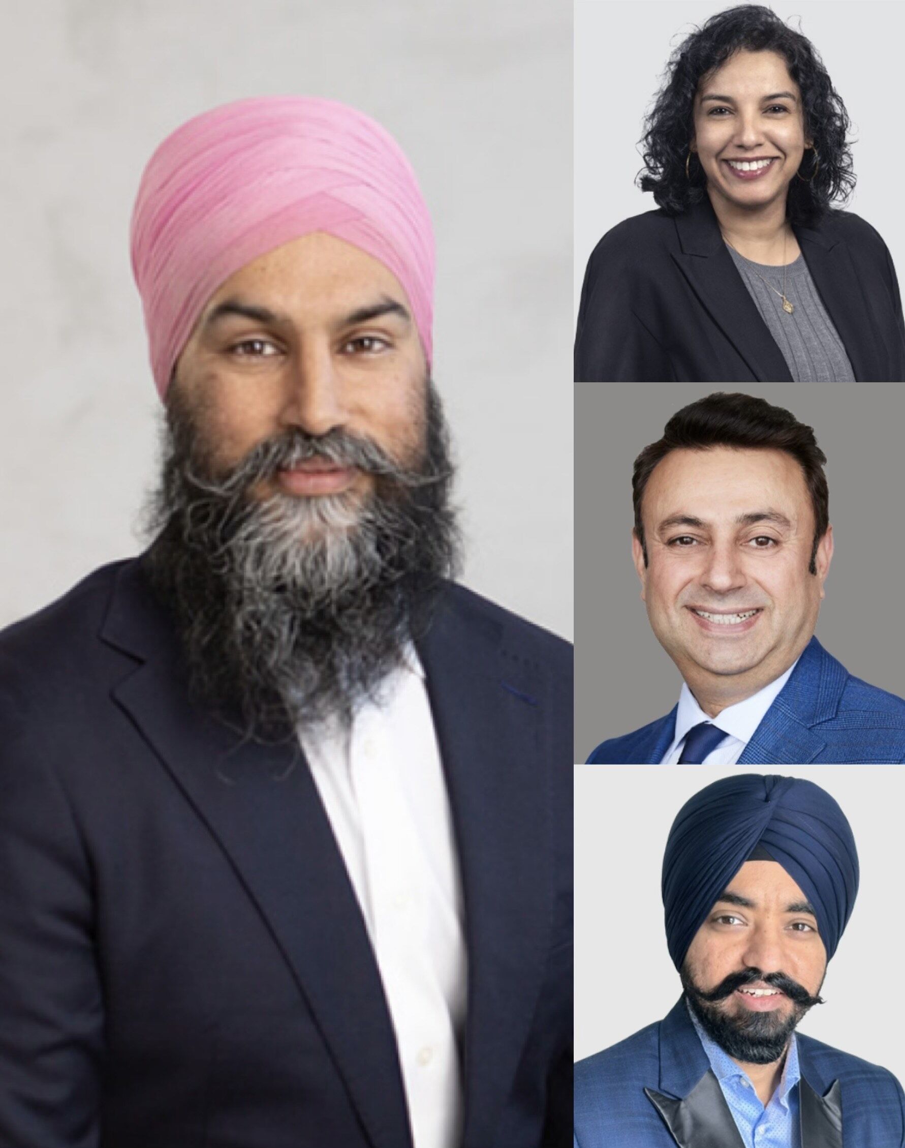 ਐੱਨਡੀਪੀ ਦੇ ਕੁੱਲ 4 ਯਾਨੀ 3 ਪੰਜਾਬੀ ਅਤੇ 1 ਭਾਰਤੀ ਉਮੀਦਵਾਰ ਹੈ। ਦੱਸਦਈਏ ਕਿ ਐੱਨਡੀਪੀ ਪਾਰਟੀ ਦੇ ਲੀਡਰ ਜਗਮੀਤ ਸਿੰਘ ਬਰਨਬੀ ਸੈਂਟਰ ਤੋਂ ਚੋਣ ਲੜ੍ਹ ਰਹੇ ਹਨ।ਮਿਸੀਸਾਗਾ ਮਾਲਟਨ ਤੋਂ ਇੰਦਰਜੀਤ ਸਿੰਘ (ਅੇਲ ਸਿੰਘ ਐਨੀ), ਕੈਲਗਰੀ ਸਕਾਈਵਿਊ ਤੋਂ ਰਾਜੇਸ਼ ਅੰਗਰਾਲ, ਐਡਮੰਟਨ ਸਾਊਥ ਈਸਟ ਤੋਂ ਹਰਪ੍ਰੀਤ ਗਰੇਵਾਲ। ਇੰਨ੍ਹਾਂ ਪਾਰਟੀਆਂ ਤੋਂ ਇਲਾਵਾ ਇੱਕ ਆਜ਼ਾਦ ਵੀ ਹਨ ਜੋ ਕਿ ਬਰੈਂਪਟਨ ਚਿਨਗੂਜ਼ੀ ਪਾਰਕ ਤੋਂ ਐਵੀ ਧਾਲੀਵਾਲ ਹਨ।