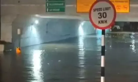 ਹੈਦਰਾਬਾਦ: ਤੇਲੰਗਾਨਾ ਵਿੱਚ ਭਾਰੀ ਮੀਂਹ ਕਾਰਨ ਸ਼ਨੀਵਾਰ ਨੂੰ ਸੜਕਾਂ 'ਤੇ ਪਾਣੀ ਭਰ ਗਿਆ, ਜਿਸ ਨਾਲ ਆਮ ਜਨਜੀਵਨ ਪ੍ਰਭਾਵਿਤ ਹੋਇਆ। ਮਲਕਪੇਟ ਰੋਡ ਅੰਡਰਬ੍ਰਿਜ ਸਮੇਤ ਕਈ ਇਲਾਕਿਆਂ ਵਿੱਚ ਲੰਬਾ ਟ੍ਰੈਫਿਕ ਜਾਮ ਲੱਗ ਗਿਆ।