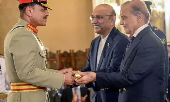 ਨਿਯੁਕਤੀ: ਪ੍ਰਧਾਨ ਮੰਤਰੀ ਸ਼ਾਹਬਾਜ਼ ਸ਼ਰੀਫ ਦੀ ਬੇਨਤੀ 'ਤੇ ਰਾਸ਼ਟਰਪਤੀ ਆਸਿਫ਼ ਅਲੀ ਜ਼ਰਦਾਰੀ ਨੇ ਮੁਨੀਰ ਨੂੰ CDF ਅਤੇ ਫੌਜ ਮੁਖੀ (COAS) ਵਜੋਂ ਪੰਜ ਸਾਲਾਂ ਲਈ ਨਿਯੁਕਤ ਕੀਤਾ ਹੈ।