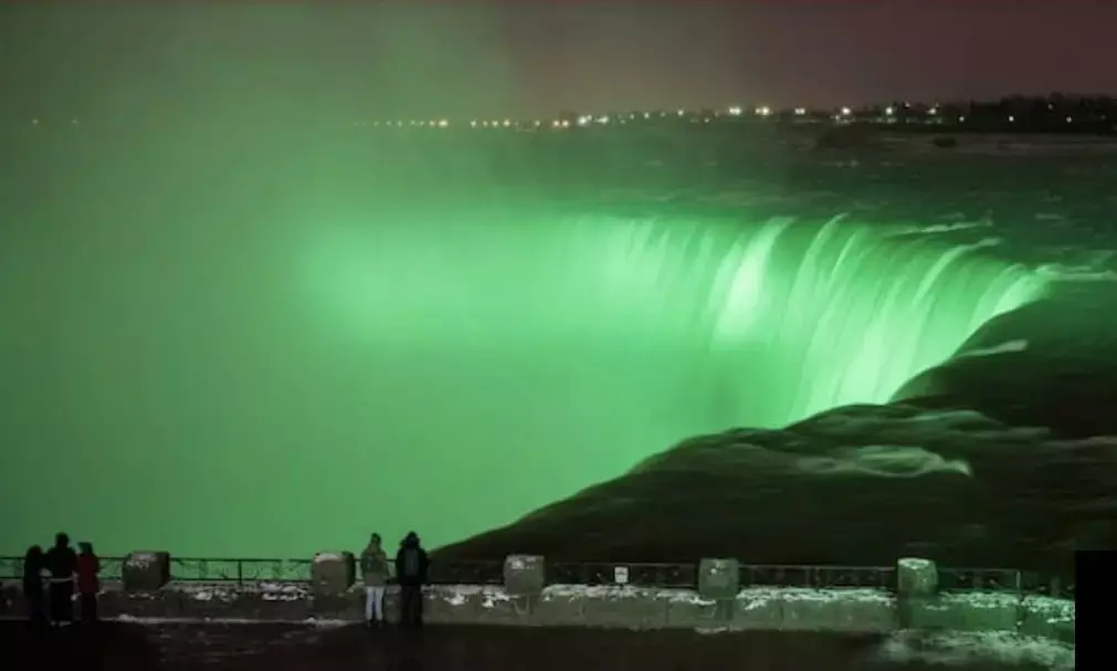 ਫੋਟੋ ਕੈਪਸ਼ਨ: ਸੇਂਟ ਪੈਟ੍ਰਿਕ ਦਿਵਸ ਮੌਕੇ ਹਰੇ ਰੰਗ ਵਿੱਚ ਰੰਗਿਆ ਨਿਆਗਰਾ ਫਾਲਸ ਦਾ ਮਨਮੋਹਕ ਦ੍ਰਿਸ਼।