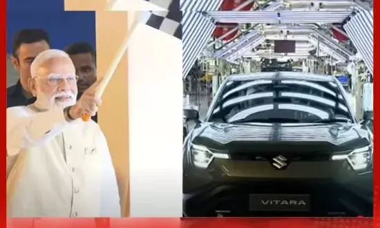 ਅਹਿਮਦਾਬਾਦ - ਪ੍ਰਧਾਨ ਮੰਤਰੀ ਨਰਿੰਦਰ ਮੋਦੀ ਨੇ ਅੱਜ ਅਹਿਮਦਾਬਾਦ ਦੇ ਹੰਸਲਪੁਰ ਸਥਿਤ ਸੁਜ਼ੂਕੀ ਮੋਟਰ ਪਲਾਂਟ ਵਿੱਚ ਮਾਰੂਤੀ ਸੁਜ਼ੂਕੀ ਦੀ ਪਹਿਲੀ ਬੈਟਰੀ ਇਲੈਕਟ੍ਰਿਕ ਕਾਰ, ਈ-ਵਿਟਾਰਾ, ਨੂੰ ਹਰੀ ਝੰਡੀ ਦਿਖਾ ਕੇ ਰਵਾਨਾ ਕੀਤਾ। ਇਹ ਕਾਰ ਨਾ ਸਿਰਫ਼ ਭਾਰਤ ਵਿੱਚ ਵੇਚੀ ਜਾਵੇਗੀ, ਸਗੋਂ ਦੁਨੀਆ ਦੇ 100 ਤੋਂ ਵੱਧ ਦੇਸ਼ਾਂ ਨੂੰ ਨਿਰਯਾਤ ਵੀ ਕੀਤੀ ਜਾਵੇਗੀ। ਇਸ ਲਾਂਚ ਨਾਲ ਭਾਰਤ ਗਲੋਬਲ ਈਵੀ ਮਾਰਕੀਟ ਵਿੱਚ ਇੱਕ ਵੱਡਾ ਹਿੱਸੇਦਾਰ ਬਣ ਗਿਆ ਹੈ।