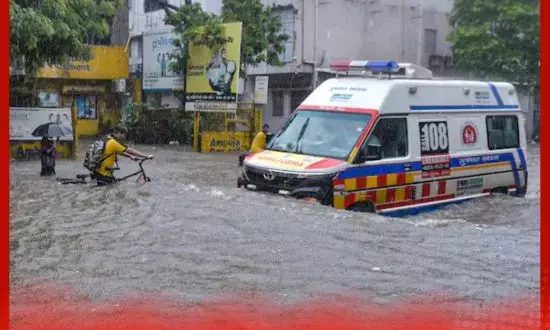 ਗੁਜਰਾਤ 'ਚ ਪਿਛਲੇ 24 ਘੰਟਿਆਂ ਦੌਰਾਨ ਭਾਰੀ ਮੀਂਹ ਕਾਰਨ ਕਈ ਇਲਾਕਿਆਂ ਵਿੱਚ ਹੜ੍ਹਾਂ ਜਿਹੀ ਸਥਿਤੀ ਬਣੀ।