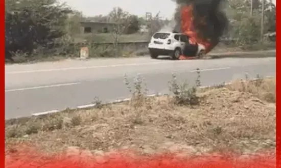 ਕੁਝ ਦੇਰ ਵਿੱਚ ਹੀ ਕਾਰ ਦੇ ਅਗਲੇ ਹਿੱਸੇ ਨੂੰ ਅੱਗ ਲੱਗ ਗਈ। ਇਸ ਤੋਂ ਬਾਅਦ ਫਾਇਰ ਬ੍ਰਿਗੇਡ ਨੂੰ ਘਟਨਾ ਦੀ ਸੂਚਨਾ ਦਿੱਤੀ ਗਈ। ਫਾਇਰ ਬ੍ਰਿਗੇਡ ਦੀ ਟੀਮ ਨੇ ਮੌਕੇ 'ਤੇ ਪਹੁੰਚ ਕੇ ਅੱਗ 'ਤੇ ਕਾਬੂ ਪਾਇਆ।