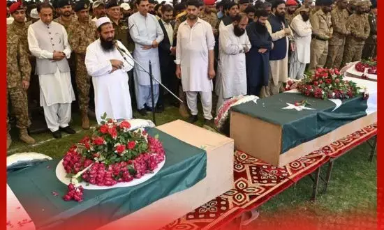 ਨਮਾਜ਼-ਏ-ਜਨਾਜ਼ਾ ਸਰਕਾਰੀ ਸਕੂਲ ਵਿੱਚ, ਜਮਾਤ-ਉਦ-ਦਾਵਾ ਦੇ ਹਾਫਿਜ਼ ਅਬਦੁਲ ਰਉਫ ਨੇ ਅਗਵਾਈ ਕੀਤੀ।