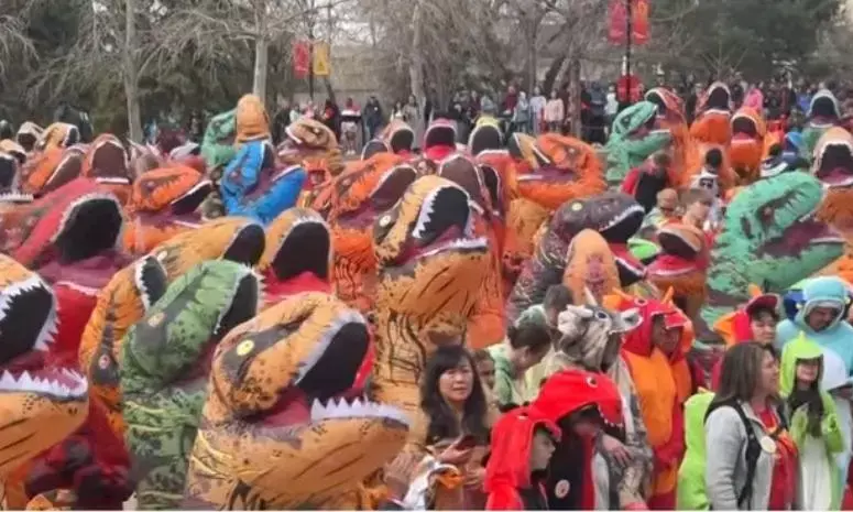 ਸਮਾਗਮ ਦੌਰਾਨ ਰੰਗ-ਬਿਰੰਗੇ ਡਾਇਨਾਸੋਰ ਭੇਸਾਂ ਵਿੱਚ ਲੋਕਾਂ ਨੇ ਖੁਸ਼ੀ ਦਾ ਪ੍ਰਗਟਾਵਾ ਕਰਦੇ ਹੋਏ ਇੱਕ ਵਿਲੱਖਣ ਦ੍ਰਿਸ਼ ਪੇਸ਼ ਕੀਤਾ, ਜਿਸ ਨੇ ਸਭ ਦਾ ਧਿਆਨ ਆਪਣੀ ਵੱਲ ਖਿੱਚਿਆ।