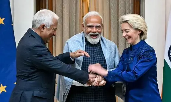 ਯੂਰਪੀਅਨ ਕੌਂਸਲ ਦੇ ਪ੍ਰਧਾਨ ਐਂਟੋਨੀਓ ਲੁਈਸ ਸੈਂਟੋਸ ਡਾ ਕੋਸਟਾ ਅਤੇ ਯੂਰਪੀਅਨ ਕਮਿਸ਼ਨ ਦੇ ਪ੍ਰਧਾਨ ਉਰਸੁਲਾ ਵਾਨ ਡੇਰ ਲੇਅਨ ਨੇ ਦਿੱਲੀ ਦੇ ਹੈਦਰਾਬਾਦ ਹਾਊਸ ਵਿਖੇ ਪ੍ਰਧਾਨ ਮੰਤਰੀ ਨਰਿੰਦਰ ਮੋਦੀ ਨਾਲ ਮੁਲਾਕਾਤ ਕੀਤੀ। ਇਸ ਮੁਲਾਕਾਤ ਦੌਰਾਨ ਉਭਰੇ ਤਿੰਨ ਨੇਤਾਵਾਂ ਦੀ ਤਸਵੀਰ ਬਹੁਤ ਕੁਝ ਬੋਲਦੀ ਹੈ। ਇਹ ਦਰਸਾਉਂਦੀ ਹੈ ਕਿ ਭਵਿੱਖ ਵਿੱਚ ਯੂਰਪੀਅਨ ਦੇਸ਼ਾਂ ਅਤੇ ਭਾਰਤ ਵਿਚਕਾਰ ਸਬੰਧ ਕਿੰਨੇ ਮਜ਼ਬੂਤ ਹੋਣਗੇ।