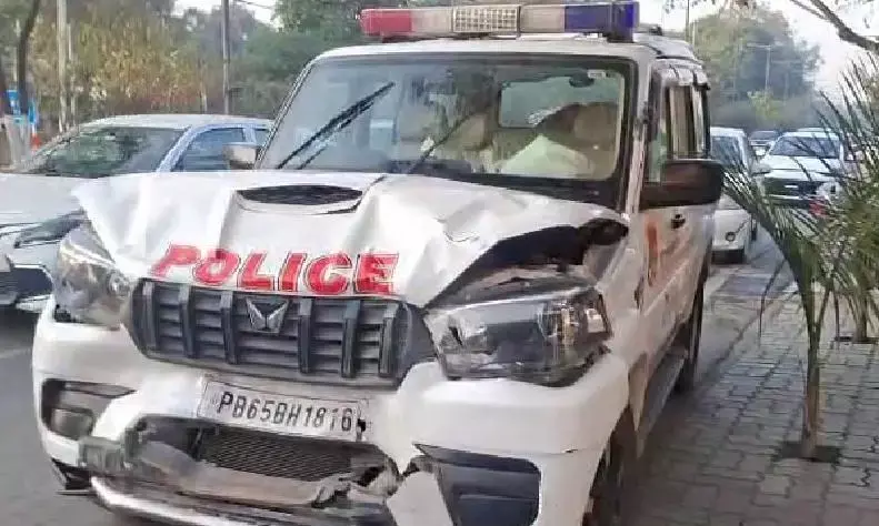 ਕੁਝ ਹੀ ਦੂਰੀ ’ਤੇ ਪੁਲਿਸ ਮੁਲਾਜ਼ਮਾਂ ਅਤੇ ਆਰੋਪੀਆਂ ਵਿਚਕਾਰ ਹੱਥਾਪਾਈ ਹੋ ਗਈ। ਇਸ ਦੌਰਾਨ ਪੁਲਿਸ ਵਾਹਨ ਤੋਂ ਡਰਾਈਵਰ ਦਾ ਕੰਟਰੋਲ ਹਟ ਗਿਆ ਅਤੇ ਗੱਡੀ ਸਿੱਧੀ ਇੱਕ ਇਨੋਵਾ ਕਾਰ ਨਾਲ ਟਕਰਾ ਗਈ। ਟੱਕਰ ਇੰਨੀ ਭਿਆਨਕ ਸੀ ਕਿ ਪੁਲਿਸ ਵਾਹਨ ਨੂੰ ਭਾਰੀ ਨੁਕਸਾਨ ਪੁੱਜਿਆ ਅਤੇ ਉਸ ਦੇ ਏਅਰਬੈਗ ਵੀ ਖੁਲ੍ਹ ਗਏ।