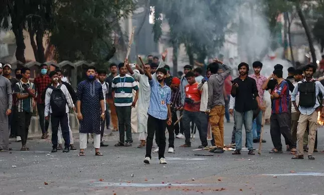 ਸ਼ੇਖ ਹਸੀਨਾ ਦੀ ਮੌਤ ਦੀ ਸਜ਼ਾ ਤੋਂ ਬਾਅਦ ਢਾਕਾ ਵਿੱਚ ਸਥਿਤੀ ਵਿਗੜ ਗਈ ਹੈ। ਕਈ ਇਲਾਕਿਆਂ ਵਿੱਚ ਭਾਰੀ ਹਿੰਸਾ, ਅੱਗਜ਼ਨੀ ਅਤੇ ਬੰਬ ਧਮਾਕੇ ਹੋਏ। ਕਈ ਵਾਹਨ ਸਾੜ ਦਿੱਤੇ ਗਏ, ਅਤੇ ਸਰਕਾਰੀ ਦਫਤਰਾਂ 'ਤੇ ਹਮਲਾ ਕੀਤਾ ਗਿਆ। ਪ੍ਰਦਰਸ਼ਨਕਾਰੀਆਂ ਨੂੰ ਕਾਬੂ ਕਰਨ ਲਈ ਪੁਲਿਸ ਨੂੰ ਅੱਥਰੂ ਗੈਸ, ਲਾਠੀਚਾਰਜ ਅਤੇ ਗੋਲੀਬਾਰੀ ਕਰਨੀ ਪਈ। ਇਸ ਹਿੰਸਾ ਵਿੱਚ ਹੁਣ ਤੱਕ ਦੋ ਲੋਕਾਂ ਦੀ ਮੌਤ ਦੀ ਖ਼ਬਰ ਹੈ। ਦਰਜਨਾਂ ਲੋਕ ਜ਼ਖਮੀ ਹੋਏ ਹਨ।