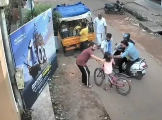 ਕੰਨੂਰ, ਕੇਰਲ: ਕੇਰਲ ਦੇ ਕੰਨੂਰ ਜ਼ਿਲ੍ਹੇ ਦੇ ਪਜ਼ਯੰਗੜੀ ਇਲਾਕੇ ਵਿੱਚ ਇੱਕ ਦਿਲ ਜਿੱਤ ਲੈਣ ਵਾਲੀ ਘਟਨਾ ਸਾਹਮਣੇ ਆਈ ਹੈ। ਇੱਕ ਅੱਠ ਸਾਲ ਦੀ ਕੁੜੀ ਸਾਈਕਲ ਚਲਾਉਂਦੇ ਸਮੇਂ ਹਾਦਸੇ ਦਾ ਸ਼ਿਕਾਰ ਹੋ ਸਕਦੀ ਸੀ, ਜਦੋਂ ਉਸਦੇ ਗਲੇ ਵਿੱਚ ਅਚਾਨਕ ਚਿਊਇੰਗਮ ਫਸ ਗਈ ਅਤੇ ਉਸਨੂੰ ਸਾਹ ਲੈਣ ਵਿੱਚ ਮੁਸ਼ਕਲ ਹੋਣ ਲੱਗੀ।