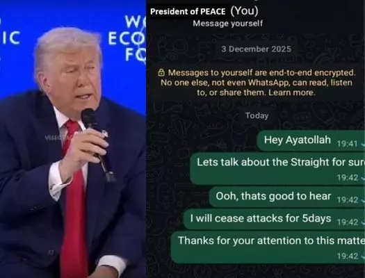 ਅਮਰੀਕਾ ਅਤੇ ਈਰਾਨ ਵਿਚਕਾਰ ਜਾਰੀ ਜੰਗ ਹੁਣ ਡਿਜੀਟਲ ਵਾਰ (Digital War) ਅਤੇ ਸੋਸ਼ਲ ਮੀਡੀਆ 'ਤੇ ਤਨਜ਼ਬਾਜ਼ੀ ਤੱਕ ਪਹੁੰਚ ਗਈ ਹੈ। ਈਰਾਨ ਨੇ ਇੱਕ ਫਰਜ਼ੀ ਵਟਸਐਪ ਚੈਟ (Fake WhatsApp Chat) ਦਾ ਸਕ੍ਰੀਨਸ਼ਾਟ ਸਾਂਝਾ ਕਰਕੇ ਅਮਰੀਕੀ ਰਾਸ਼ਟਰਪਤੀ ਡੋਨਾਲਡ ਟਰੰਪ ਦੇ ਉਨ੍ਹਾਂ ਦਾਅਵਿਆਂ ਦਾ ਮਜ਼ਾਕ ਉਡਾਇਆ ਹੈ, ਜਿਸ ਵਿੱਚ ਟਰੰਪ ਨੇ ਈਰਾਨ ਨਾਲ "ਬਹੁਤ ਵਧੀਆ ਅਤੇ ਅਰਥਪੂਰਨ ਗੱਲਬਾਤ" ਹੋਣ ਦੀ ਗੱਲ ਕਹੀ ਸੀ। ਦੱਖਣੀ ਅਫ਼ਰੀਕਾ ਵਿੱਚ ਮੌਜੂਦ ਈਰਾਨੀ ਦੂਤਾਵਾਸ (Embassy) ਵੱਲੋਂ ਪੋਸਟ ਕੀਤੀ ਗਈ ਇਸ ਤਸਵੀਰ ਵਿੱਚ ਟਰੰਪ ਨੂੰ ਆਪਣੇ ਆਪ ਨਾਲ ਹੀ ਇੱਕਪਾਸੜ ਗੱਲਬਾਤ ਕਰਦੇ ਅਤੇ ਖ਼ੁਦ ਨੂੰ "ਸ਼ਾਂਤੀ ਦਾ ਰਾਸ਼ਟਰਪਤੀ" ਕਹਿੰਦੇ ਹੋਏ ਦਿਖਾਇਆ ਗਿਆ ਹੈ। ਇਸ ਦੇ ਜਵਾਬ ਵਿੱਚ ਵ੍ਹਾਈਟ ਹਾਊਸ ਦੀ ਪ੍ਰੈਸ ਸਕੱਤਰ (Press Secretary) ਕੈਰੋਲੀਨ ਲੇਵਿਟ ਨੇ ਸਖ਼ਤ ਰੁਖ਼ ਅਖਤਿਆਰ ਕਰਦਿਆਂ ਕਿਹਾ ਹੈ ਕਿ ਰਾਸ਼ਟਰਪਤੀ ਟਰੰਪ ਕਦੇ ਝੂਠ ਨਹੀਂ ਬੋਲਦੇ ਅਤੇ ਉਹ ਆਪਣੀਆਂ ਮੰਗਾਂ ਪੂਰੀਆਂ ਕਰਵਾਉਣ ਲਈ ਕਿਸੇ ਵੀ ਹੱਦ ਤੱਕ ਜਾ ਸਕਦੇ ਹਨ।