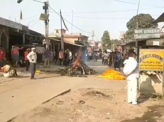 ਸ਼ਮਸ਼ਾਨਘਾਟ ਦਾ ਰਸਤਾ ਨਾ ਮਿਲਣ 'ਤੇ ਪਰਿਵਾਰ ਨੇ ਚੌਰਾਹੇ 'ਤੇ ਕੀਤਾ ਅੰਤਿਮ ਸਸਕਾਰ
