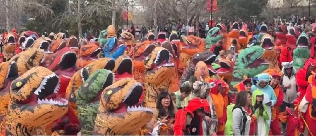 ਸਮਾਗਮ ਦੌਰਾਨ ਰੰਗ-ਬਿਰੰਗੇ ਡਾਇਨਾਸੋਰ ਭੇਸਾਂ ਵਿੱਚ ਲੋਕਾਂ ਨੇ ਖੁਸ਼ੀ ਦਾ ਪ੍ਰਗਟਾਵਾ ਕਰਦੇ ਹੋਏ ਇੱਕ ਵਿਲੱਖਣ ਦ੍ਰਿਸ਼ ਪੇਸ਼ ਕੀਤਾ, ਜਿਸ ਨੇ ਸਭ ਦਾ ਧਿਆਨ ਆਪਣੀ ਵੱਲ ਖਿੱਚਿਆ।