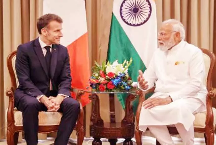 ਫਰਾਂਸ ਦੇ ਰਾਸ਼ਟਰਪਤੀ ਇਮੈਨੁਅਲ ਮੈਕਰੋਨ ਮੰਗਲਵਾਰ ਨੂੰ ਮੁੰਬਈ ਵਿੱਚ ਪ੍ਰਧਾਨ ਮੰਤਰੀ ਨਰਿੰਦਰ ਮੋਦੀ ਨਾਲ ਮੁਲਾਕਾਤ ਕੀਤੀ। ਮੈਕਰੋਨ ਇਸ ਵੇਲੇ ਭਾਰਤ ਦੇ ਤਿੰਨ ਦਿਨਾਂ ਦੌਰੇ 'ਤੇ ਹਨ। ਉਨ੍ਹਾਂ ਦਾ ਇਹ ਦੌਰਾ ਆਰਟੀਫੀਸ਼ੀਅਲ ਇੰਟੈਲੀਜੈਂਸ ਸਹਿਯੋਗ ਅਤੇ ਸੰਭਾਵੀ ਬਹੁ-ਅਰਬ ਡਾਲਰ ਦੇ ਜੰਗੀ ਜਹਾਜ਼ ਸੌਦੇ 'ਤੇ ਕੇਂਦਰਿਤ ਹੈ