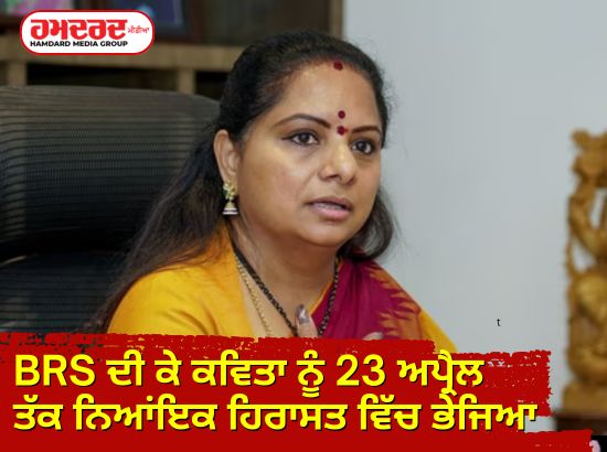 BRS ਦੀ ਕੇ ਕਵਿਤਾ ਨੂੰ 23 ਅਪ੍ਰੈਲ ਤੱਕ ਨਿਆਂਇਕ ਹਿਰਾਸਤ ਵਿੱਚ ਭੇਜਿਆ