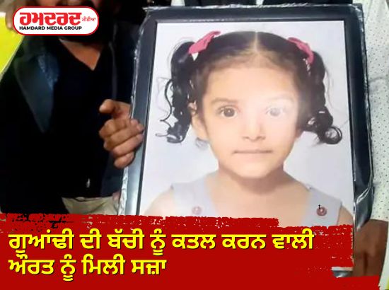 ਗੁਆਂਢੀ ਦੀ ਬੱਚੀ ਨੂੰ ਕਤਲ ਕਰਨ ਵਾਲੀ ਔਰਤ ਨੂੰ ਮਿਲੀ ਸਜ਼ਾ