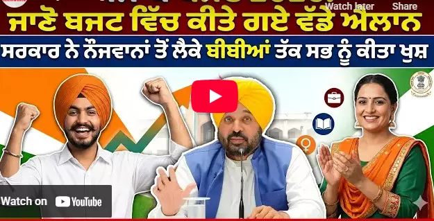 Punjab Budget 2026 : ਜਾਣੋ Budget ਵਿੱਚ ਕੀਤੇ ਗਏ ਵੱਡੇ ਐਲਾਨ | Punjab Budget Session |
